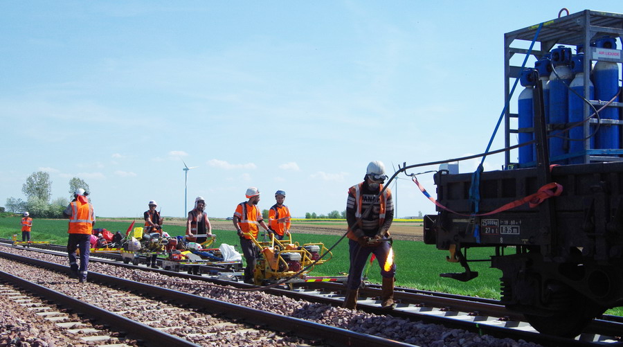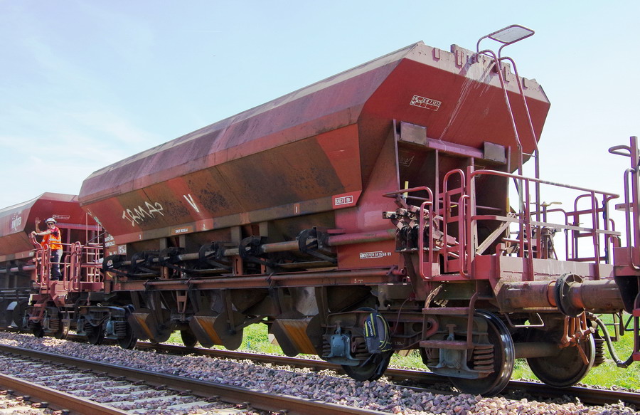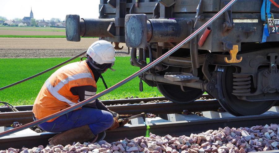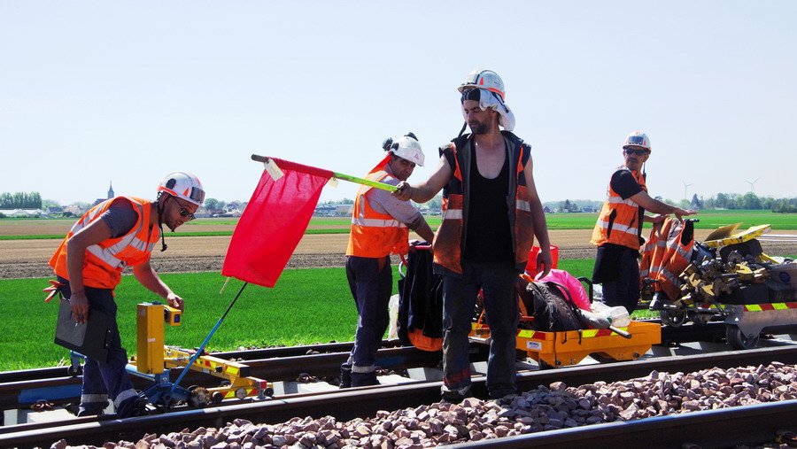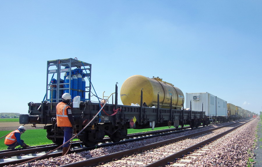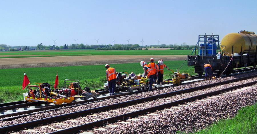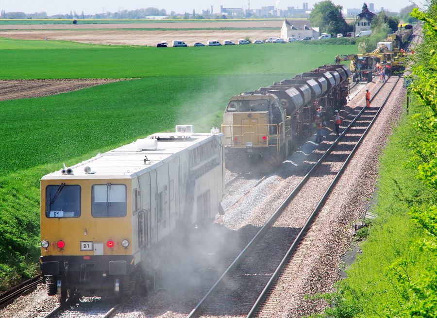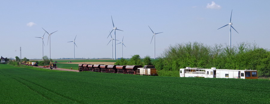 - 80 87 977 9 630-3 Uas D12 6 F-SNCFR - SNCF RESEAU de la rame MCK1 Ã Hombleux le 20-04-2018
