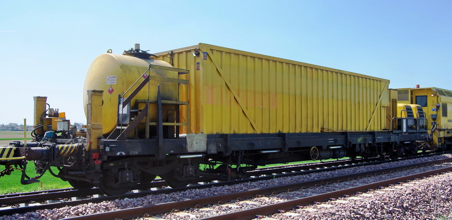 99 87 9 355 519-9 R87 5 ETF jaune sur la rame du Train de pose P95 ETF à Hombleux le 20-04-2018