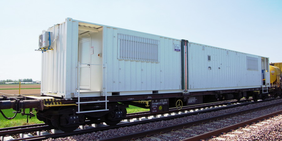 . wagon 2 WESF - de ramassage des attaches et Patins de rails et P2P (Portique pour la manutention de 2 rangées de traverses