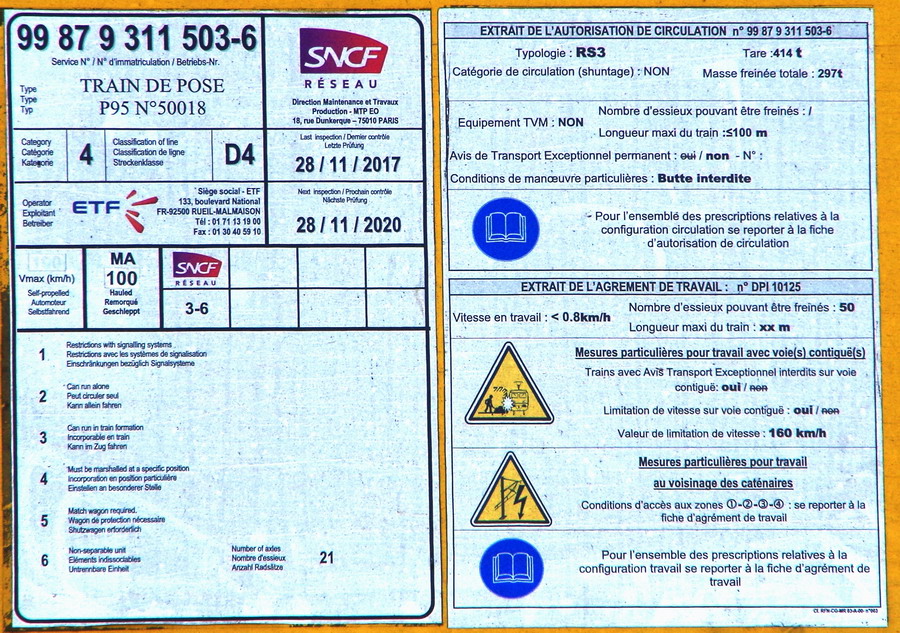- Train de pose P95 ETF 99 87 9 311 503-6 - ETF - "Addax"