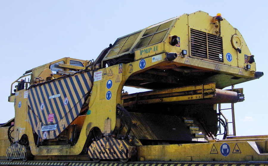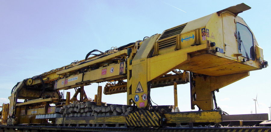 . wagon 1 WEK - de tirofonnage transportant les 2 PMP (Portique de manutention des palettes de traverses)