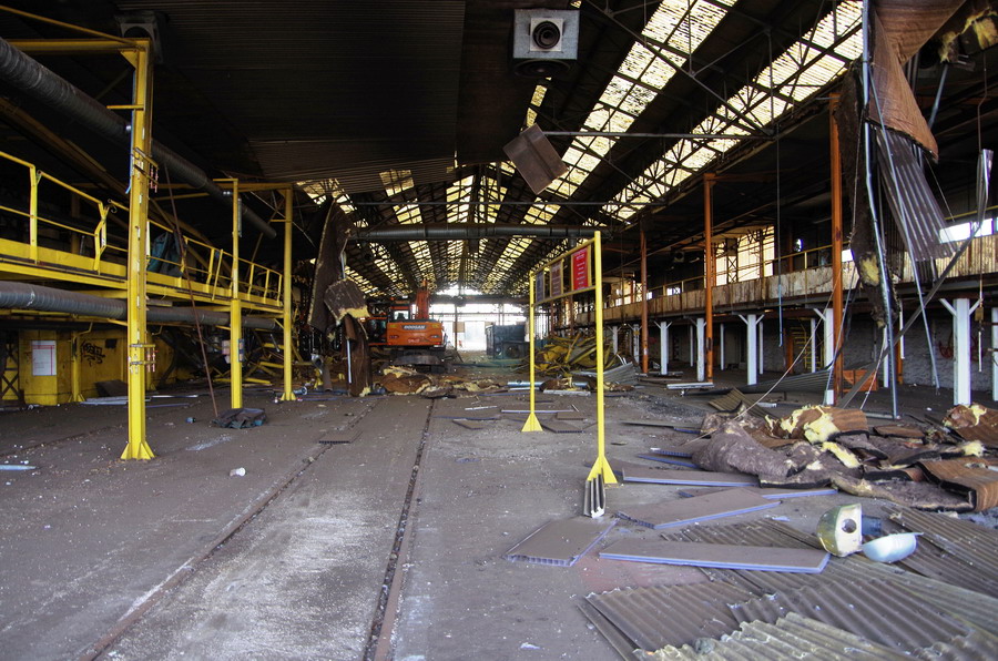 avec la démolition et le désamiantage de l'intérieur des bâtiments sur le site pour leurs transformations