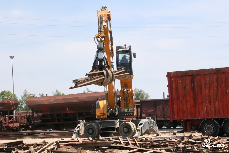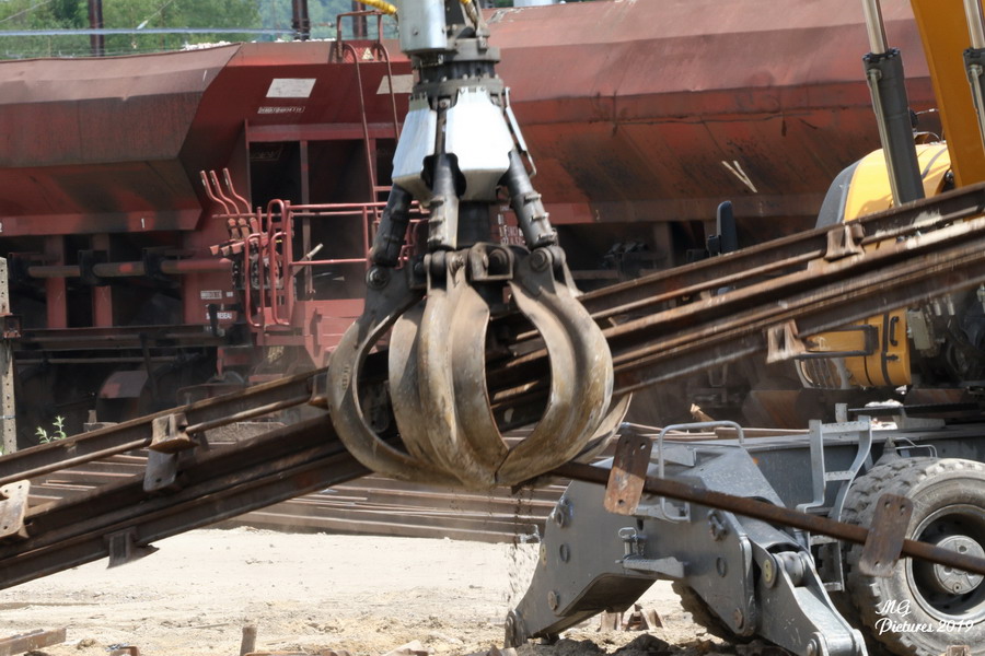 déblaiement des déchets de rail et de traverses en bois par la société SIRMET Puy-Imbert le 04-06-2019