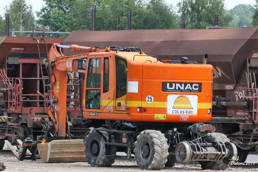 pelle RR UNAC 22TRR Colas Rail D1002900 sur la nouvelle base arrière du Puy-Imbert le 04-06-2019