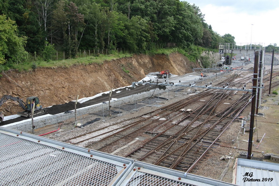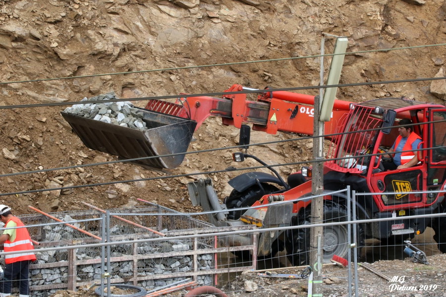 travaux de consolidation du coteau par un mur sur la nouvelle base arrière pour les travaux sur le POLT le 06-06-2019
