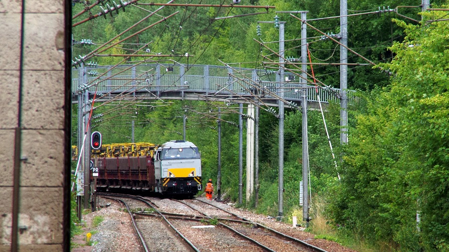 chamgement de direction du train de ballast en gare de Poix de Picardie le 20-08-2019