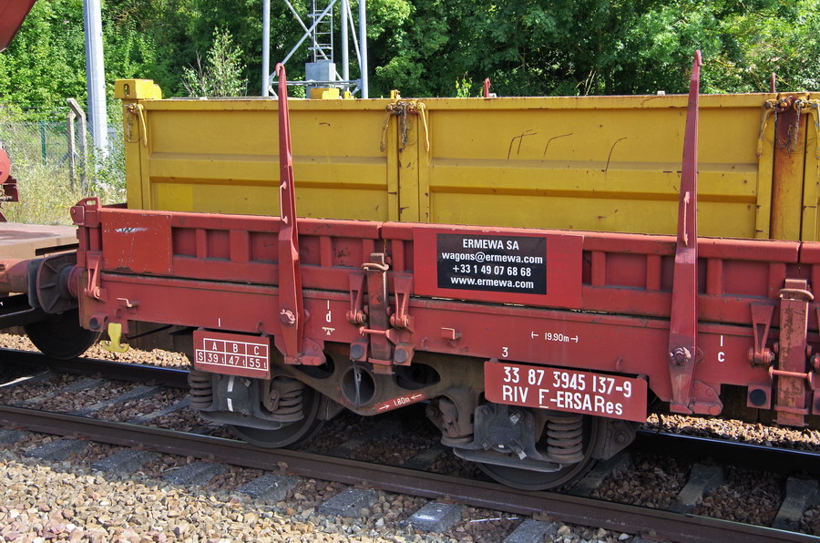 33 87 3945 137-9 Res RIV F-ERSA location TR sur le train de ballast en gare de Poix de Picardie le 20-08-2019