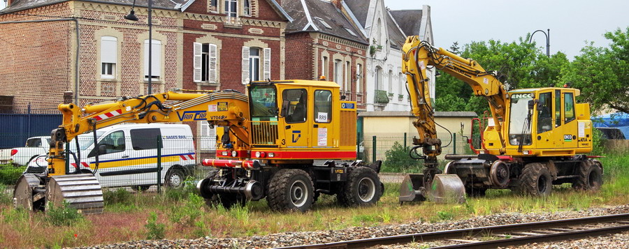 changement de lieu avec la cour de la gare de Ham avec la présence de deux Pelles Rail route