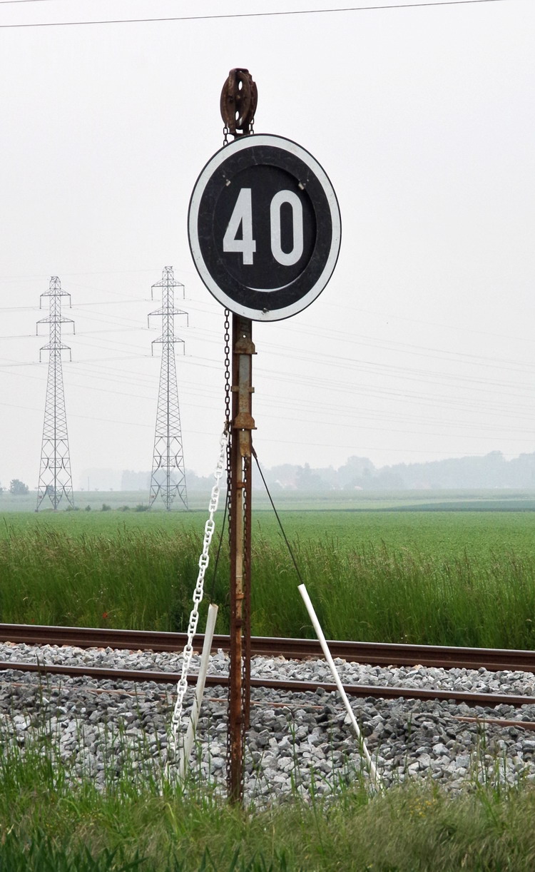 panneau de limitation de vitesse à 40 Km/h entre les PK 40 et PK 45 à Puzeaux (80) le 23-05-2018