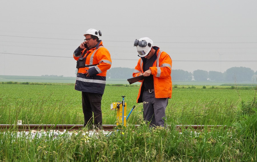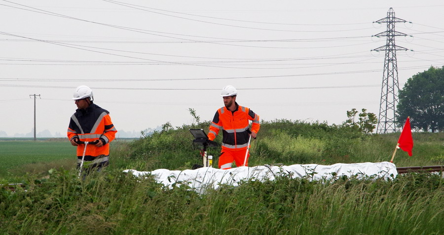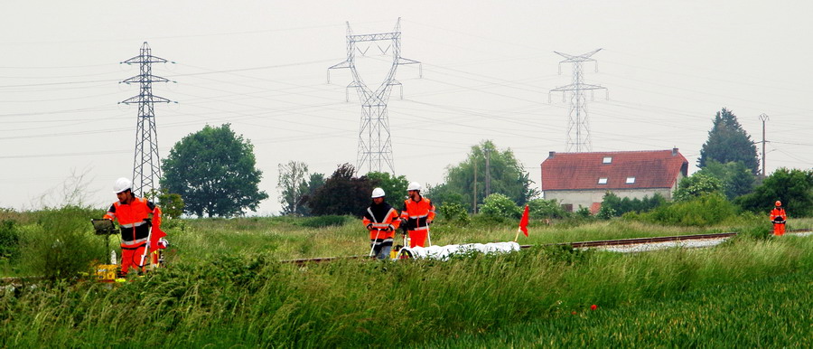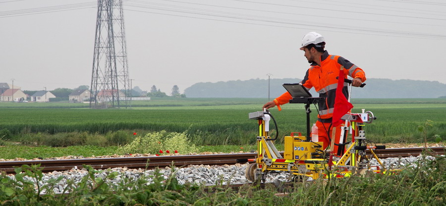 chariot portable de mesure et d’enregistrement numérique de la géométrie de la voie entre les PK 40 et PK 45 à Puzeaux (80)