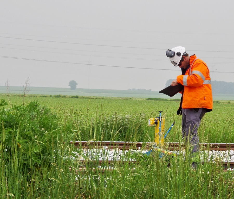 prise de mesure avec un chariot portable de mesure et d’enregistrement numérique de la géométrie de la voie et des appareils de voie
