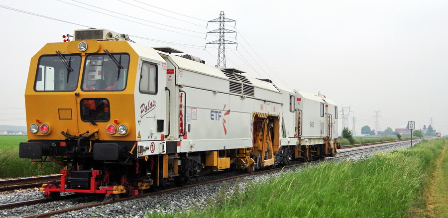 la bourreuse B45D - 99 87 9 122 501-9 ETF et la rame de Trémies D12 avec la 75037 en queue