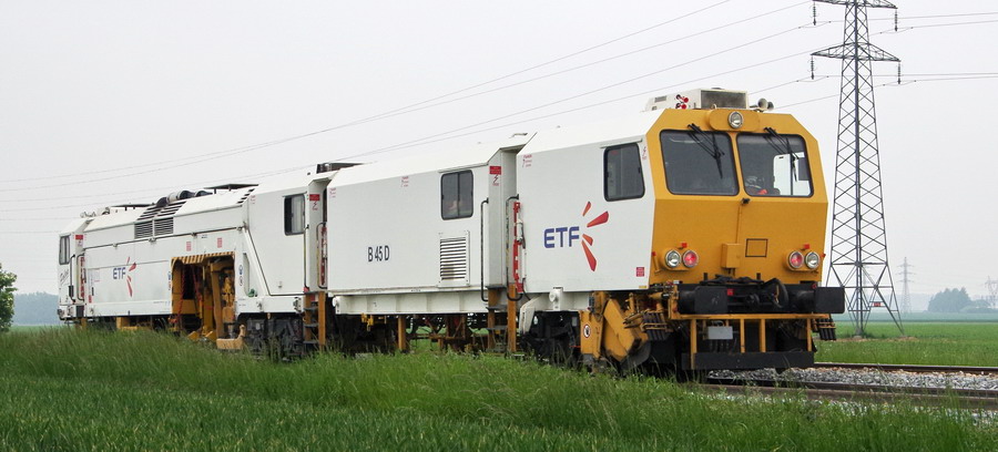 la bourreuse B45D - 99 87 9 122 501-9 ETF entre les PK 40 et PK 45 à Puzeaux (80) le 23-05-2018
