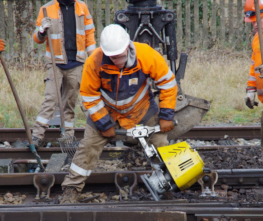 • Bourrage par vibrations multidirectionnelles en continu du ballast (comme dans toute notre gamme d'équipements de bourrage) sous tous types de traverses (bois, béton, métallique)