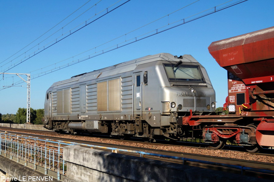 la 75044 d'Akiem en queue du train XDK2 de la Dégarnisseuse avec des trémies D12 le 04-09-2018
