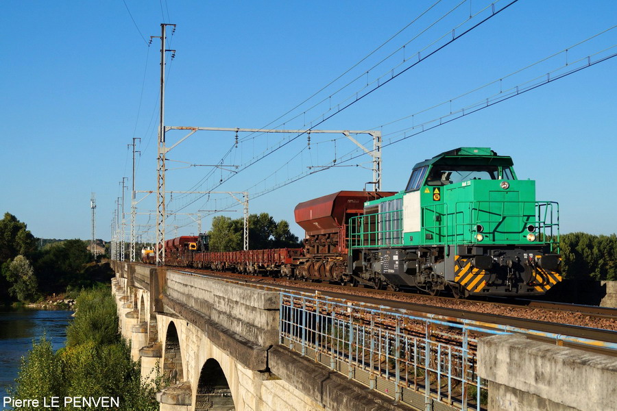 Tête du Train de pose MC avec La Coupe pont de la Loire à Montlouis-sur-Loire le 11-09-2018