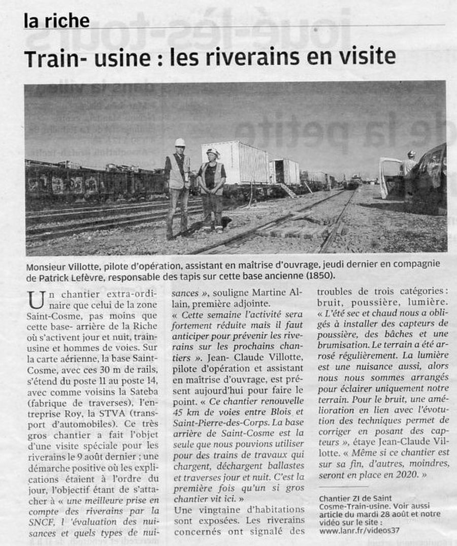 Voici un article sur la visite de la base-arrière de Saint-Come à la Riche (37) le 9 août 2018 pour les riverains