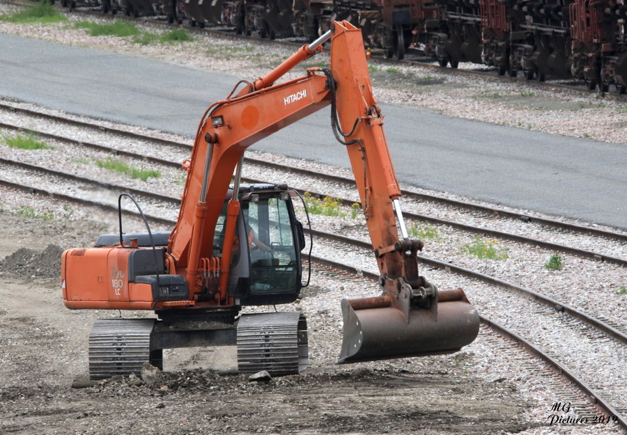 déblaiement sur la base de travaux du Puy-Imbert le 19-06-2019 avec une Pelle route à chenilles HITACHI ZAXIS 180LC