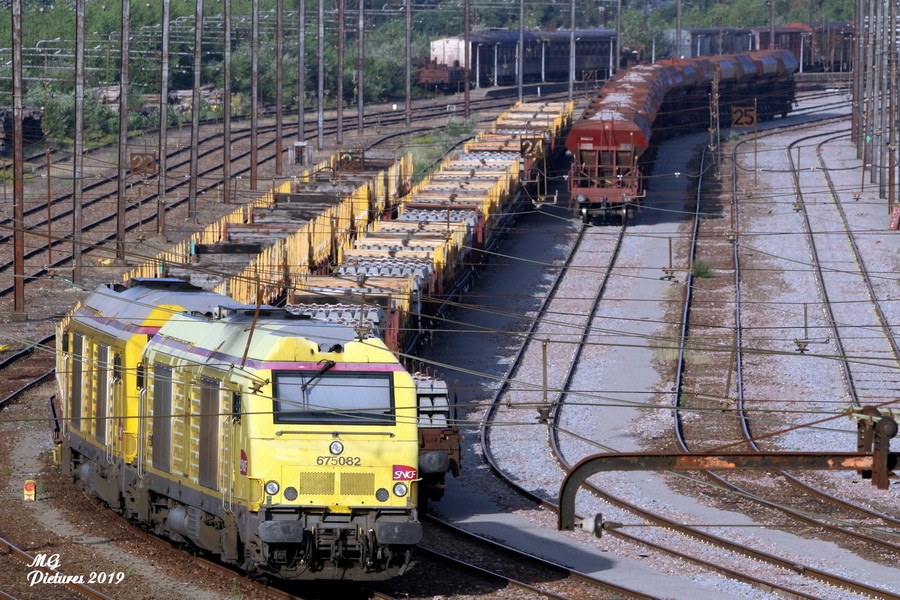 une UM avec les BB 675082 et BB 6750xx en livrée Infra jaune sur une rame de TTx au Puy-Imbert le 29-06-2019
