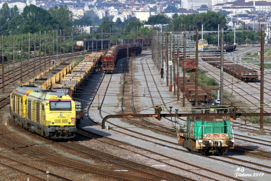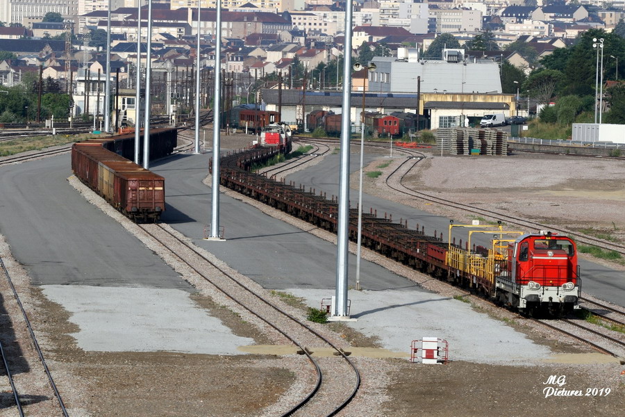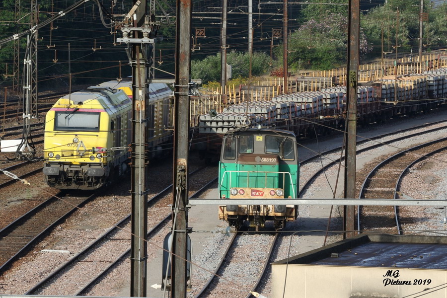 présence de deux locotrateurs Y60 8156 et Y 60 8197 sur la base de travaux du Puy-Imbert le 19-06-2019