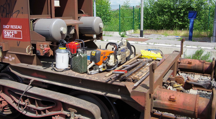 un établi sur un des wagons trémies du train K3K4 en gare de Marcelcave (80) PK 21,100 le 15-06-2018