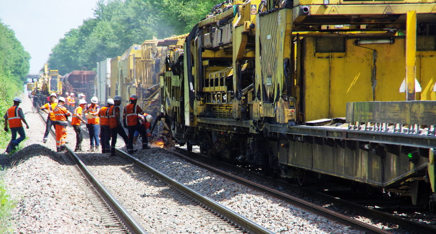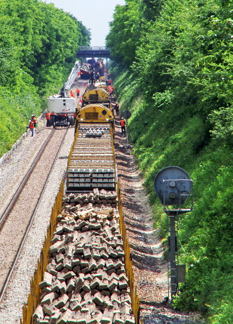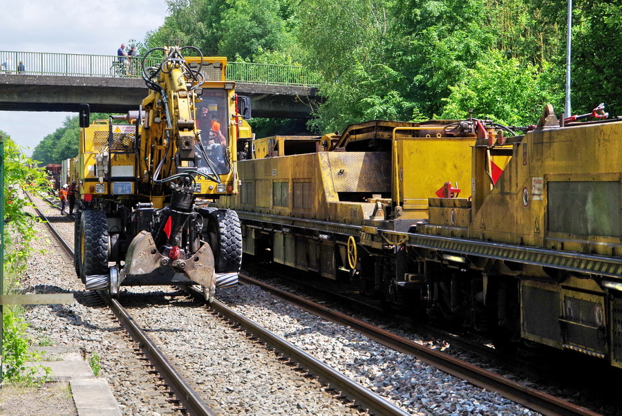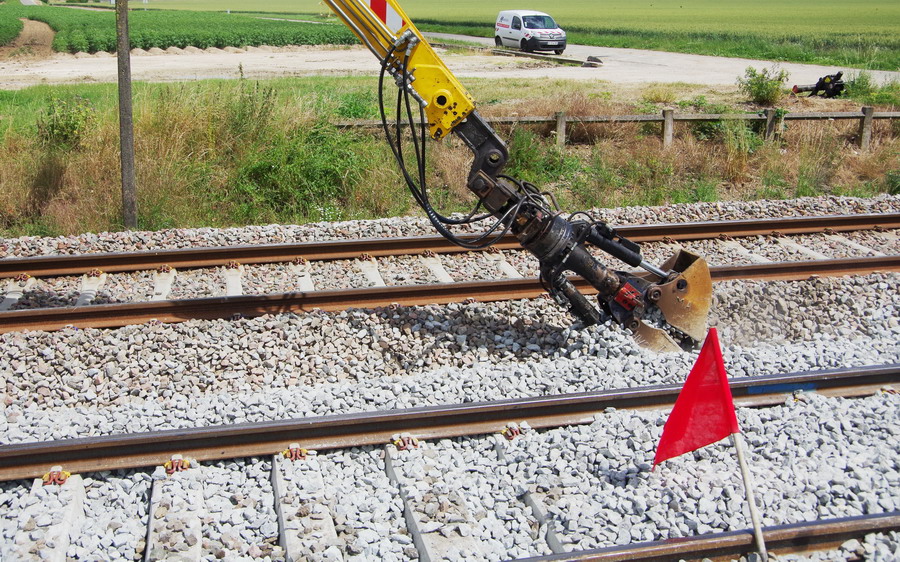 toujours à Marcelcave (80) PK 21 + ou - au niveau du PN n°6 travaux de ballast avec la Pelle Rail route