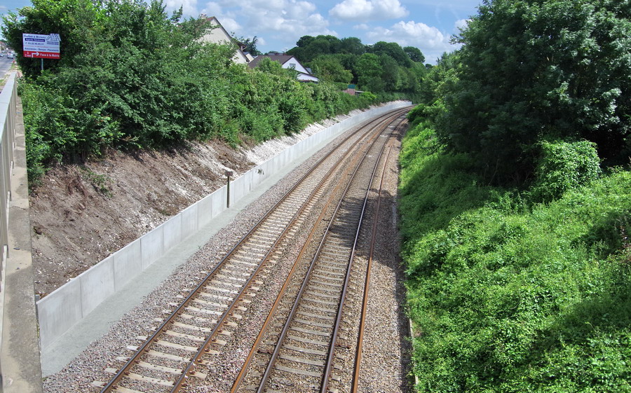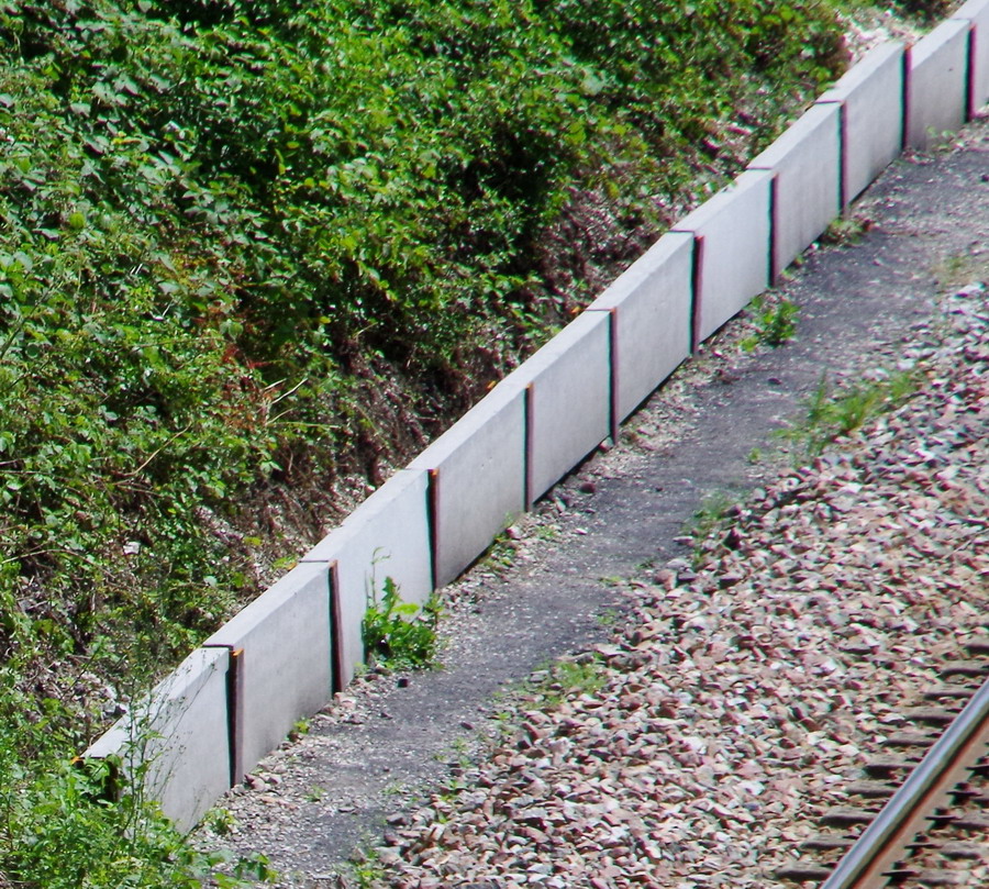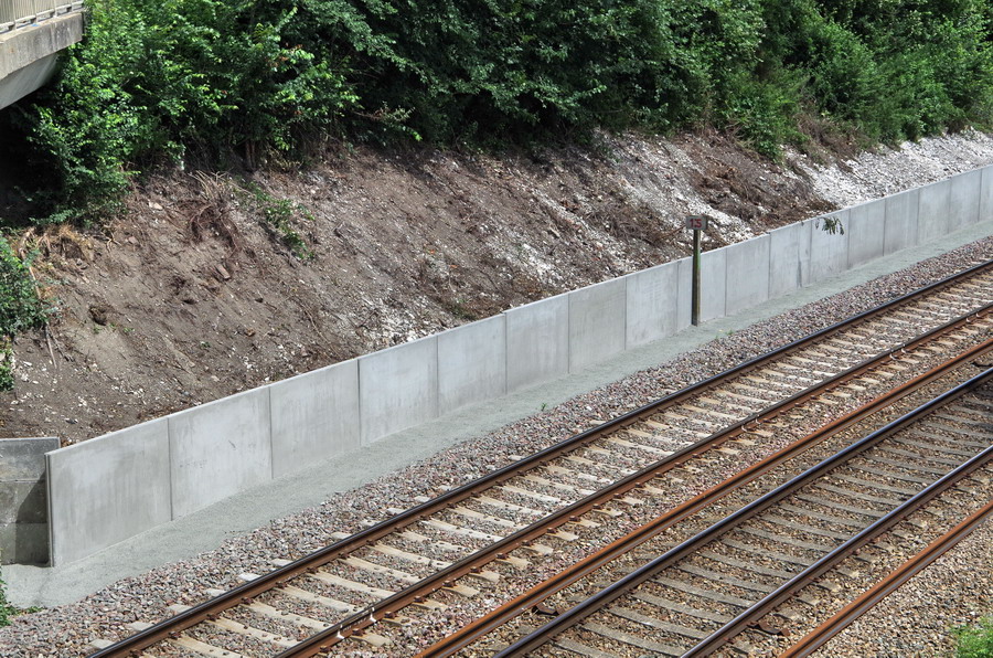 des plaques en béton en L pour éviter les coulées de terre ou de boue sur la voie