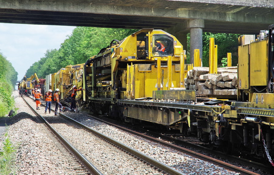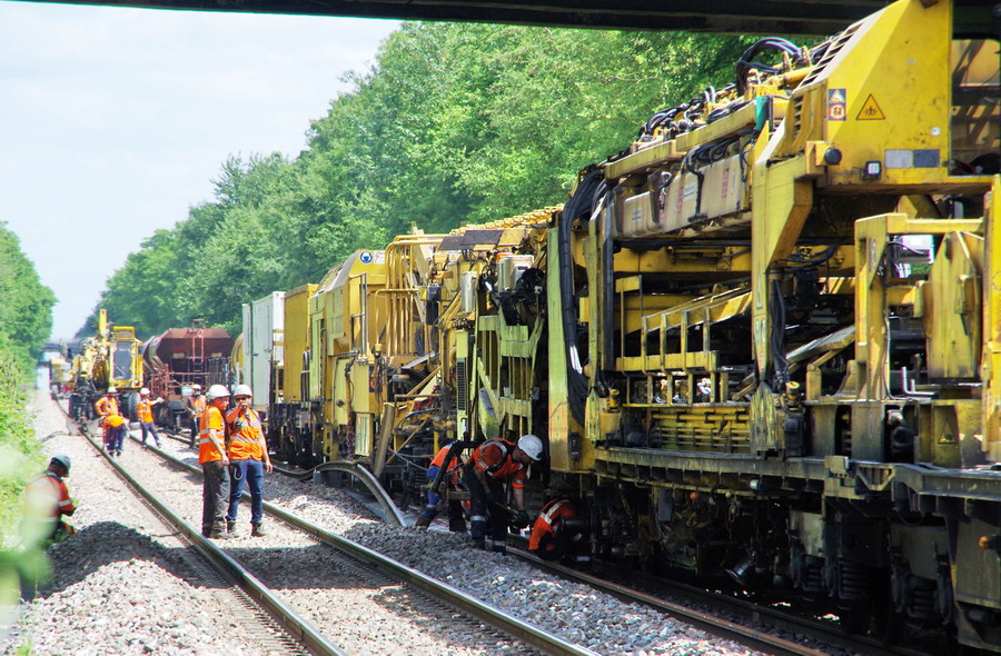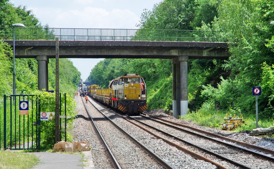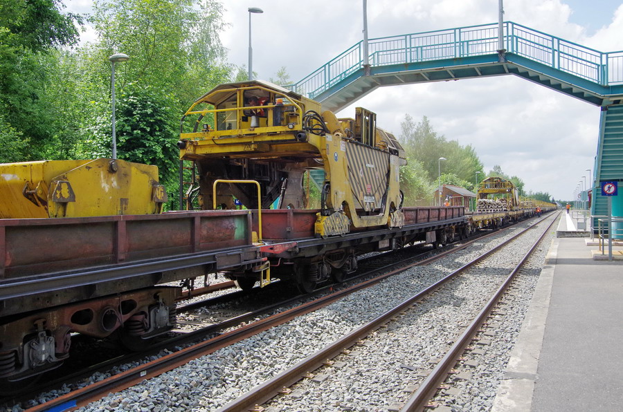 la rame de la coupe et de pose du P95 - 99 87 9 311 503-6 - ETF - "Addax" à Villers-Bretonneux le 15-06-2018 Présence de la Pelle Rail route Geismar KGT V n°4716 - Meccoli A