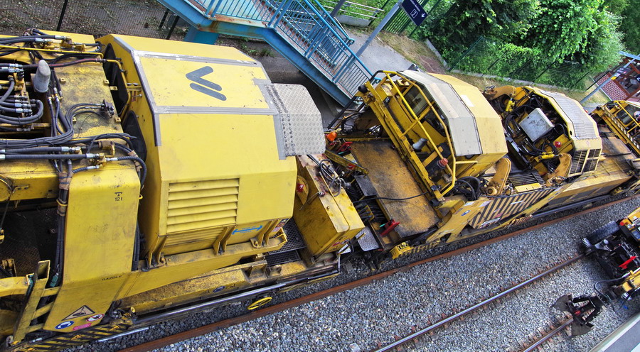 entre les deux rames la Bourreuse de ligne de type 08-32C Framafer n°2048 de 1982 - 99 87 9 422 518-0 Meccoli