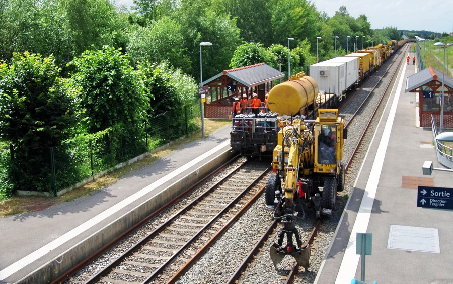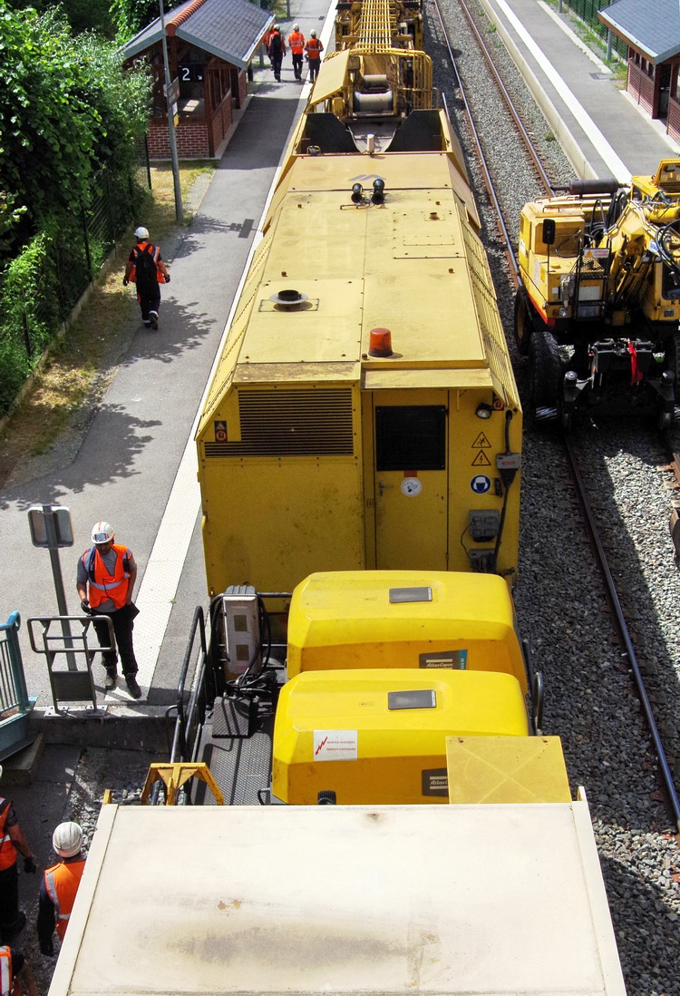 fin de chantier pour la journée de la rame de la coupe et de pose du P95 - 99 87 9 311 503-6 - ETF - "Addax" en gare de Villers-Bretonneux le 15-06-2018