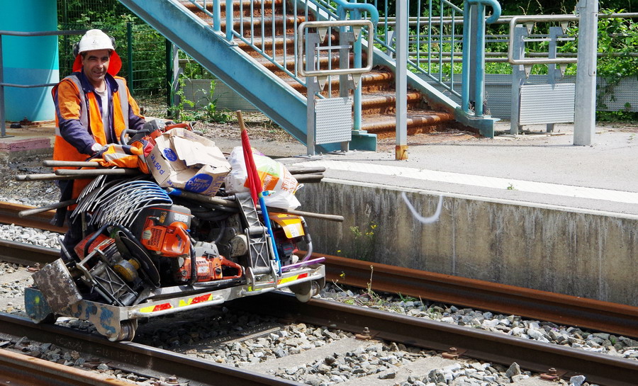 toute l'équipe d'ETF de la rame de la coupe et de pose du P95 salut le Forum et nous les saluons de notre côté en gare de Villers-Bretonneux le 15-06-2018