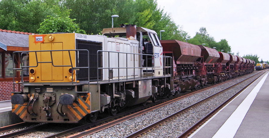 le tronçon des Trémies D12 refoule pour reformer le train n°MCK1 avec la G1206 BB 5001498 - 92 87 0 061 498-7 F-ETF pour un retour sur la basse de travaux de Laon en gare de Villers-Bretonneux le 15-06-2018