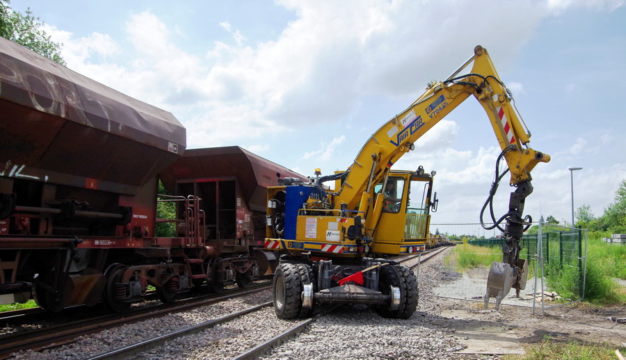 présence de la Pelle Rail route Geismar KGT V n°4716 - Meccoli A à Villers-Bretonneux le 15-06-2018