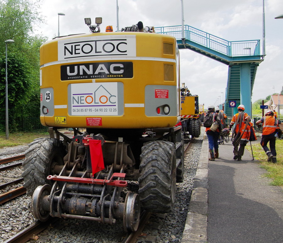 retour de la Pelle Rail route UNAC 22 TRR n°H9A00145 - Néoloc 1 (RR2) en gare de Villers Bretonneux le 15-06-2018