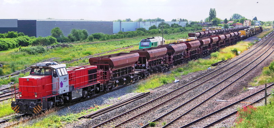 le tronçon des Trémies D12 refoule pour reformer le train n°MCK1 pour un retour sur la basse de travaux de Laon en gare de Villers-Bretonneux le 15-06-2018