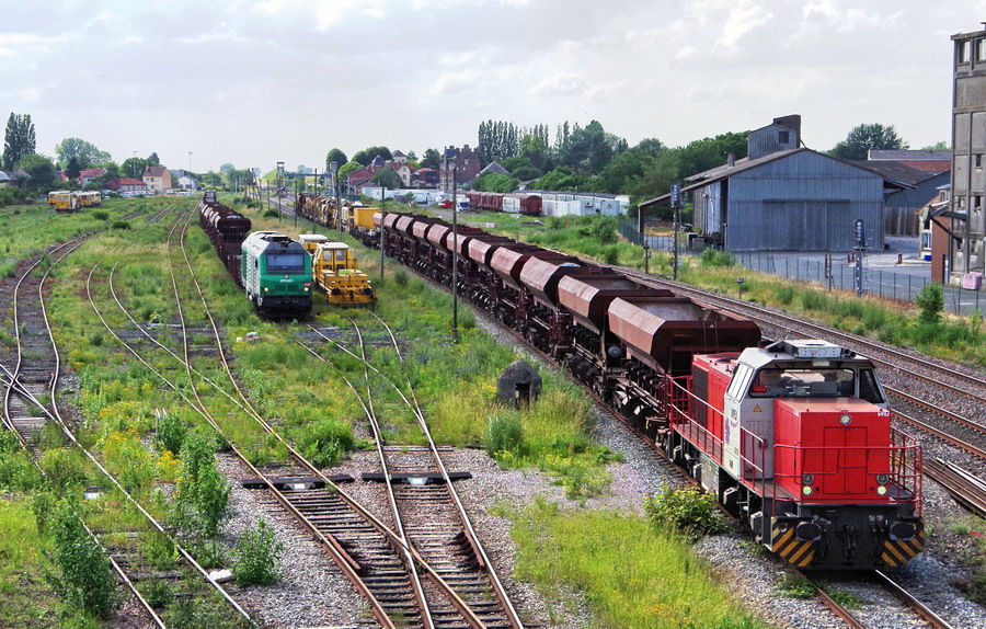 on se trouve maintenant gare de Chaulnes (80) avec le retour pour la base de travaux de Laon du train DK2 de la rame de la Dégarnisseuse RM 95-800 n°4938 - 99 87 9 314 506-6 Meccoli avec la G 1206 BB 5001685 - 92 87 0 061 736-0 F-VFLI - BB61736