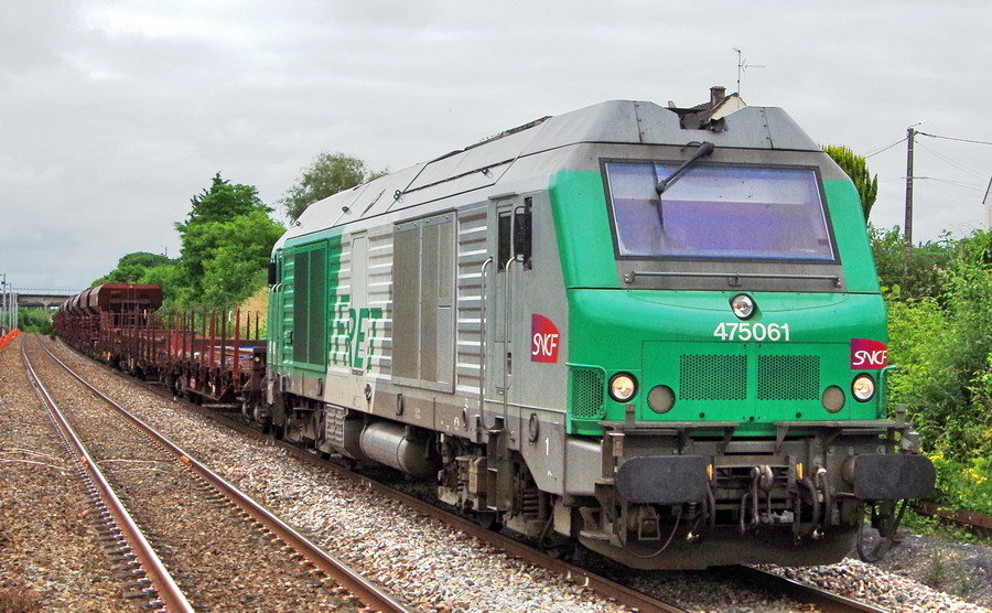 la BB 75061 en tête du train n°K3K4 avec la E4029 ETF en queue gare de Mennessis le 19-06-2018