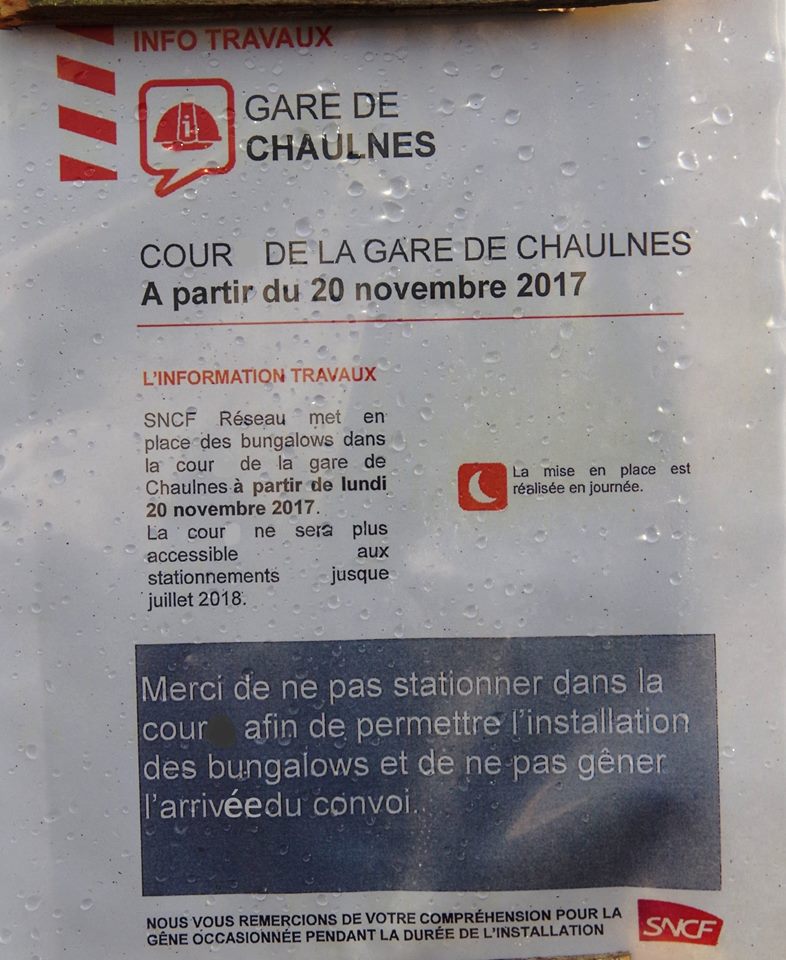 A Chaulnes mise en place par SNCF RESEAU des bungalows dans la cour de la gare à partir du lundi 20 novembre 2017