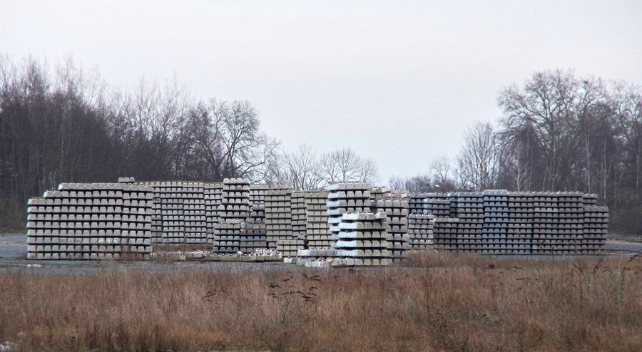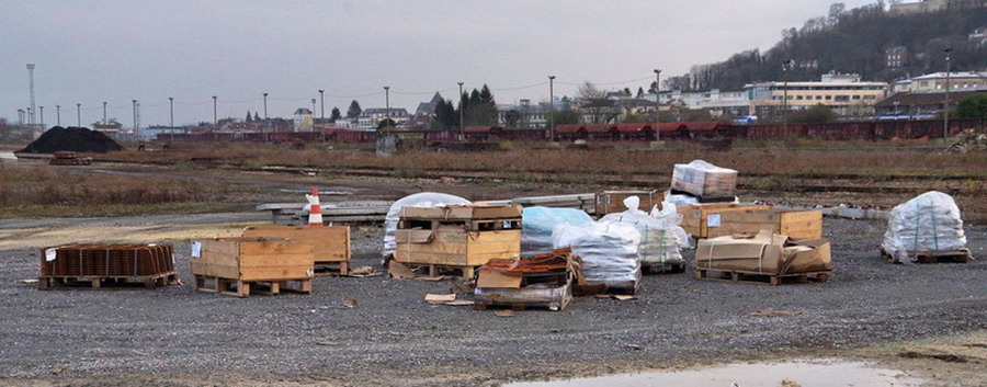 base de travaux pour ETF en gare de Laon avec le stock de traverses en béton