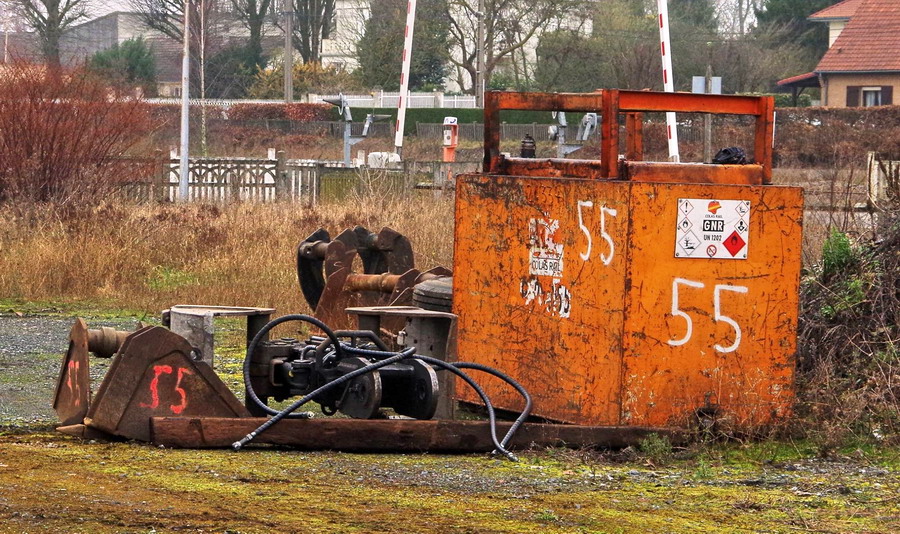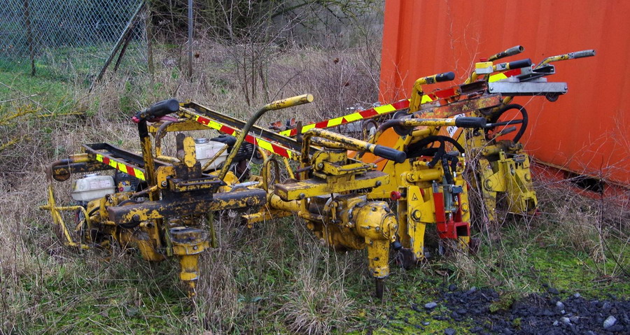 entre les containers de stockage de Colas Rail on trouve de Clipseuses ROBEL de type 34.01 de Colas Rail
