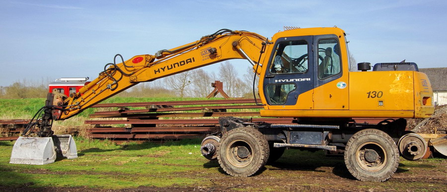 Pelle Rail route Hyundai Robex 130 W-3 n°E A0310171 - CLMTP gare de Noyelles le 06-04-2018