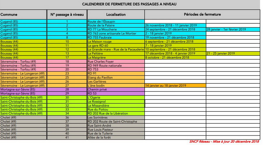 Le calendrier de fermeture des passages à niveau est mis à jour régulièrement : voir ci-dessous dans les fichiers joints