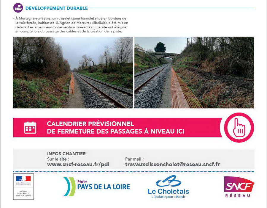 Vous pouvez nous écrire à l'adresse mail suivante : travauxclissoncholet@reseau.sncf.fr