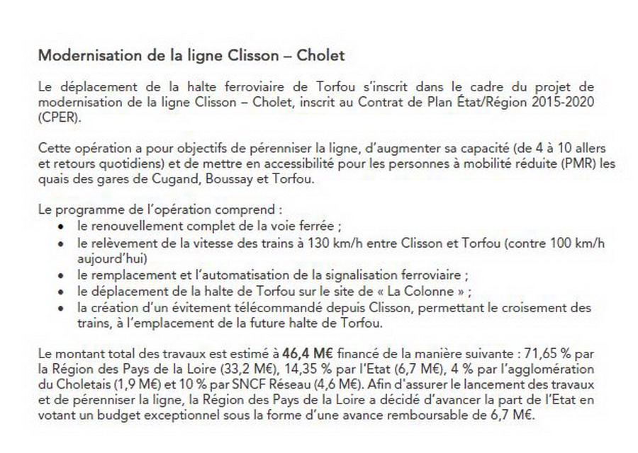 le PDF sur la modernisation de la ligne Clisson Cholet du 05 avril 2018