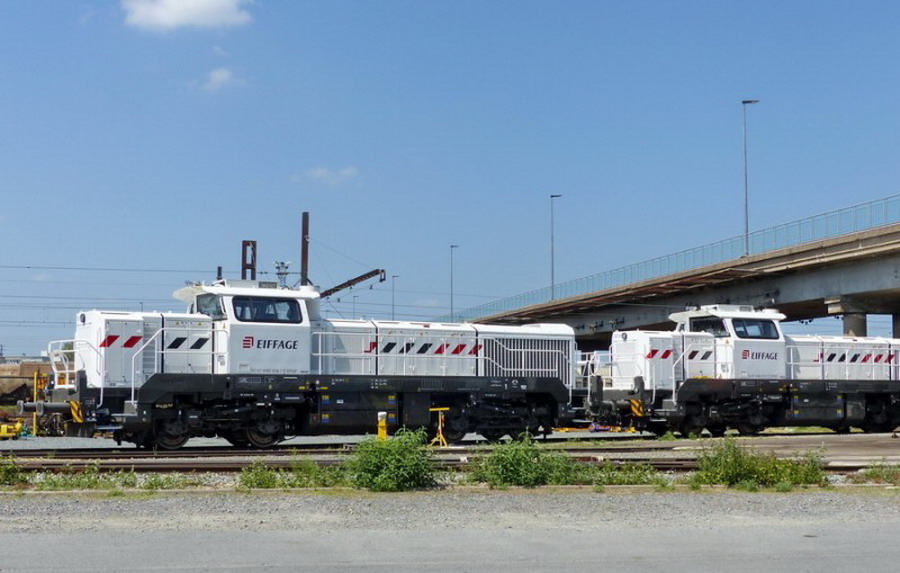 et une photo pour info de la G 1206 BB 5702185 EVN n°92 87 0002 185-3 F-ERSF avec les logos EIFFAGE sur la cabine blanche