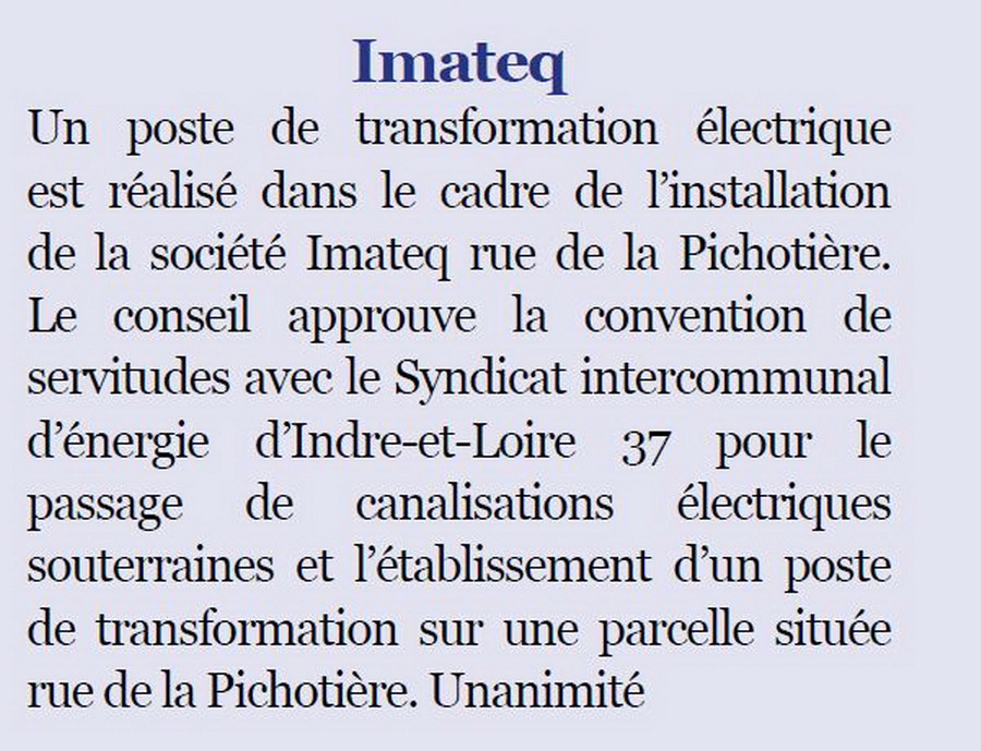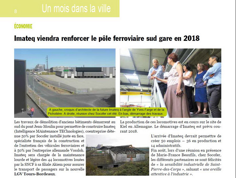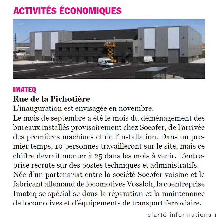pour la mise à jour sur l'avancement des travaux extérieur de l'atelier IMATEQ