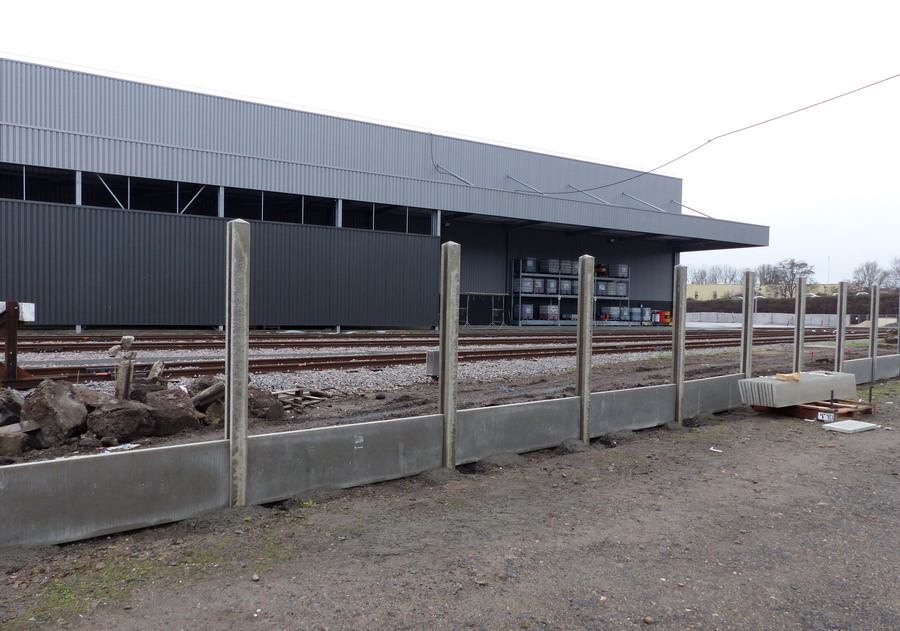 protection avec des panneaux en béton pour l'instant il y a que les poteaux de posés avec un grillage de chantier de protection le long