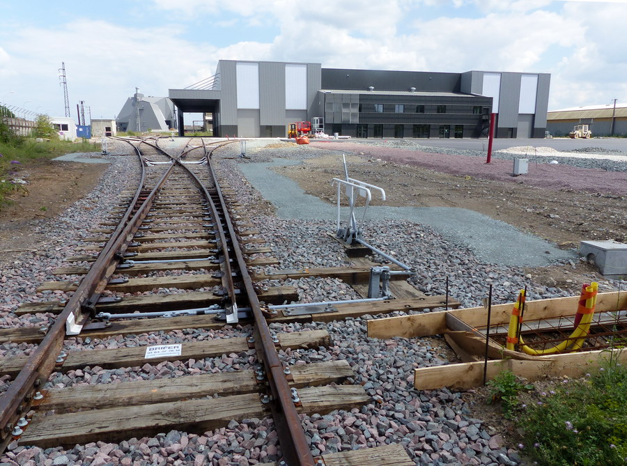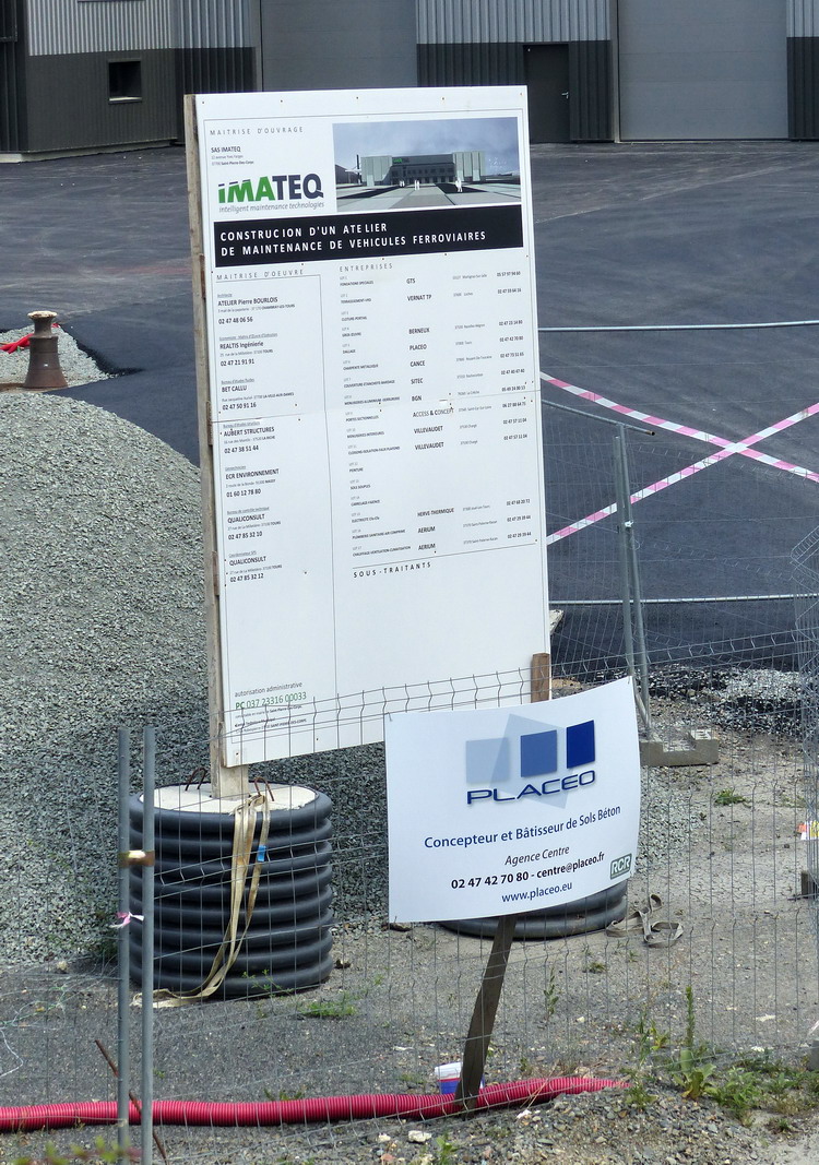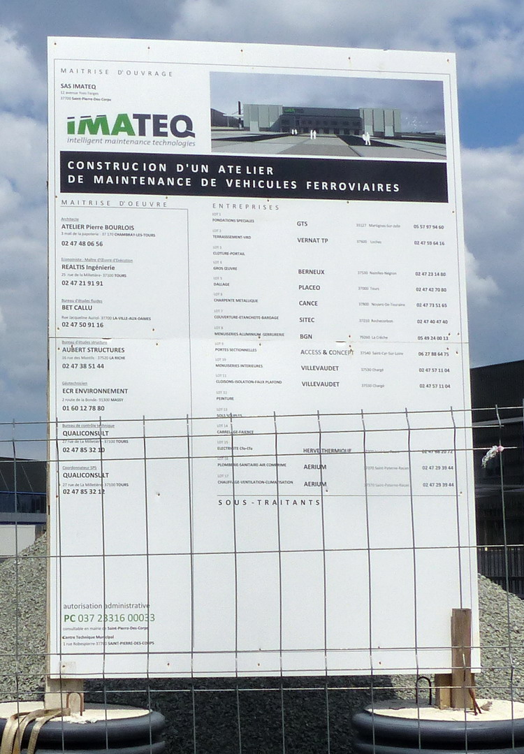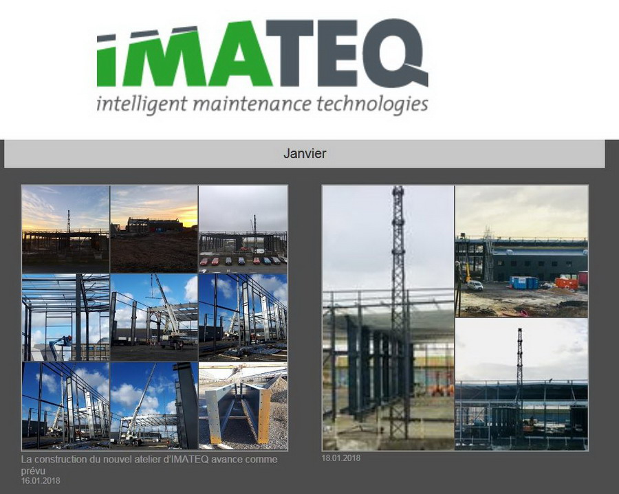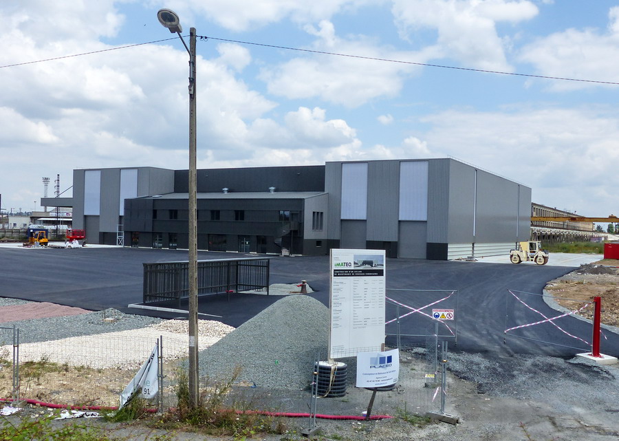 http://blog.imateq.com/La construction du nouvel atelier d’IMATEQ avance comme prévu. La prise de vue latérale de la structure montre sur la gauche l’emplacement des huit portes qui donneront accès au voies de maintenance du bâtiment. On observe également que la voies de lavage et la première voies de l’atelier seront accessibles directement sans passer par le pont transbordeur qui lui desservira toutes les voies de l’atelier. La photo laisse entrevoir que chacune des voie proposera deux emplacements pour locomotives dont un emplacement avec fosse et un emplacement sans fosse. Dans la partie en brique sur la droite de la photo logerons les services administratifs, commerciaux et d’ingénierie d’IMATEQ.