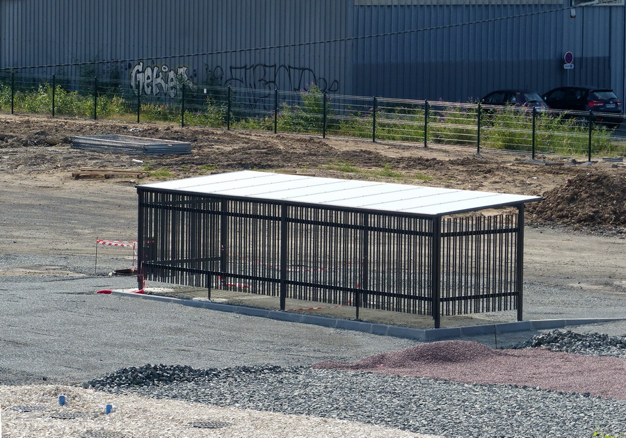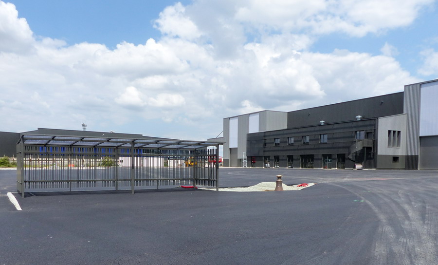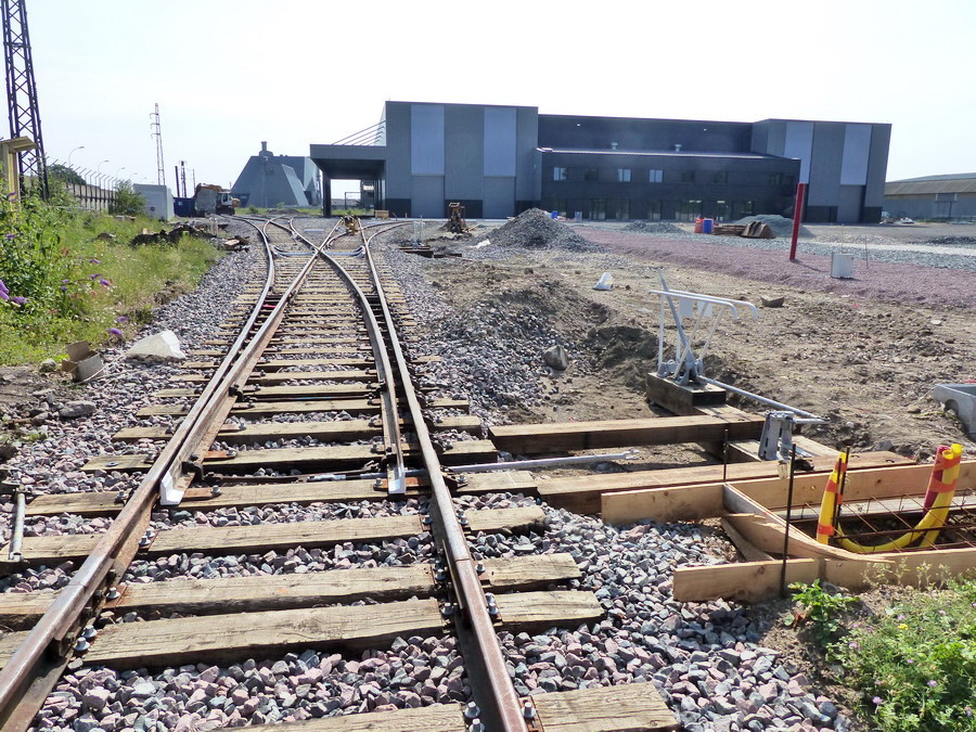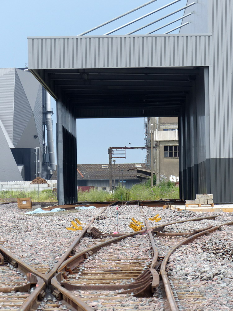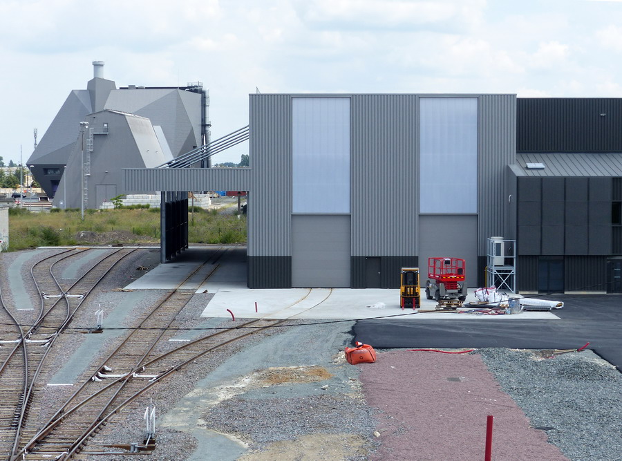 http://blog.imateq.com/La construction du nouvel atelier d’IMATEQ avance comme prévu. La prise de vue latérale de la structure montre sur la gauche l’emplacement des huit portes qui donneront accès au voies de maintenance du bâtiment. On observe également que la voies de lavage et la première voies de l’atelier seront accessibles directement sans passer par le pont transbordeur qui lui desservira toutes les voies de l’atelier. La photo laisse entrevoir que chacune des voie proposera deux emplacements pour locomotives dont un emplacement avec fosse et un emplacement sans fosse. Dans la partie en brique sur la droite de la photo logerons les services administratifs, commerciaux et d’ingénierie d’IMATEQ.