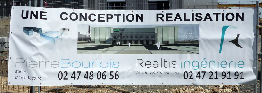 la banderole pour l'atelier d'architecture de Pierre Bourlois - Realis ingénierie pour le nouveau atelier d'IMATEQ pour la maintenance des machines Vossloh à SPDC le 22-07-2018